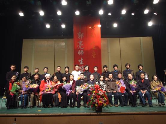 音乐会上还演奏了几首风格迥异的重奏作品,其中有大家熟悉的四重奏《火把节》;六重奏《土耳其进行曲》,还有由郭亮改编的六重奏《乌兹别克舞曲》、《自由探戈》。在这些作品中更好地体现出笙这件和声乐器的优势,并在笙重奏课教学的领域做出了大胆的尝试。